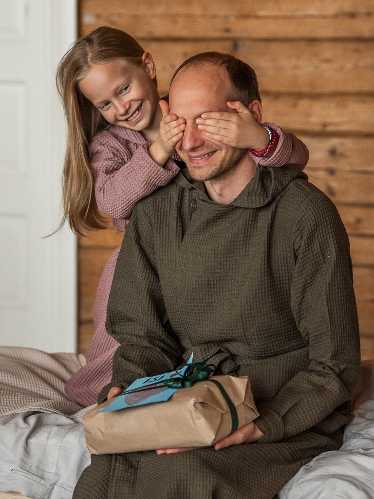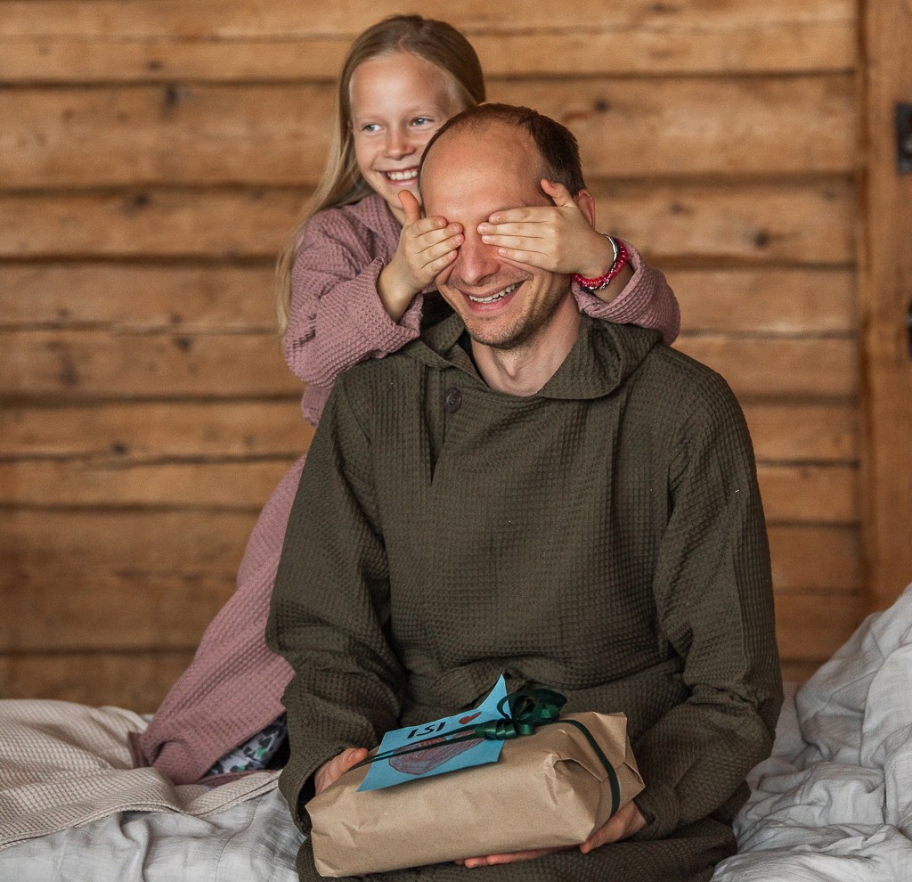 Toinen loistava vaihtoehto on vohvelikankaasta valmistettu kylpytakki. Kylpytakki lämmittää kylminä aamuina, suihkun jälkeen tai ulkosaunaan mennessä. Jos teidän isällä ei ole vielä kylpytakki käytössä, hän ei tiedäkään miten paljon mukavuutta se toisi moneen hetkeen. Vohvelista valmistettu kylpytakki on lämmin, mutta kuivaa hyvin kosteuden iholta suihkun jälkeen.
