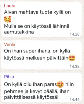 Työntekijöiden palaute joululahjaksi saaduista harso-kylpytakeista.